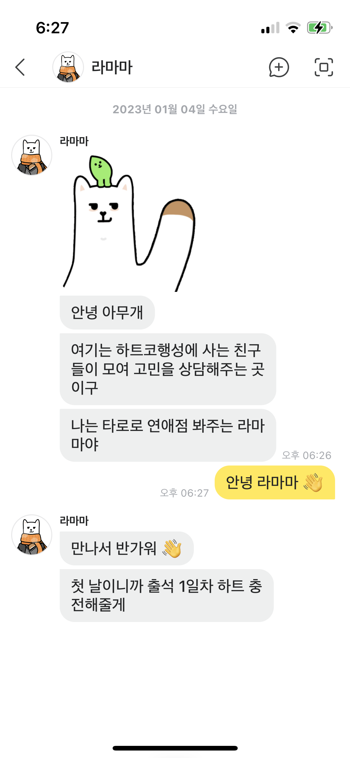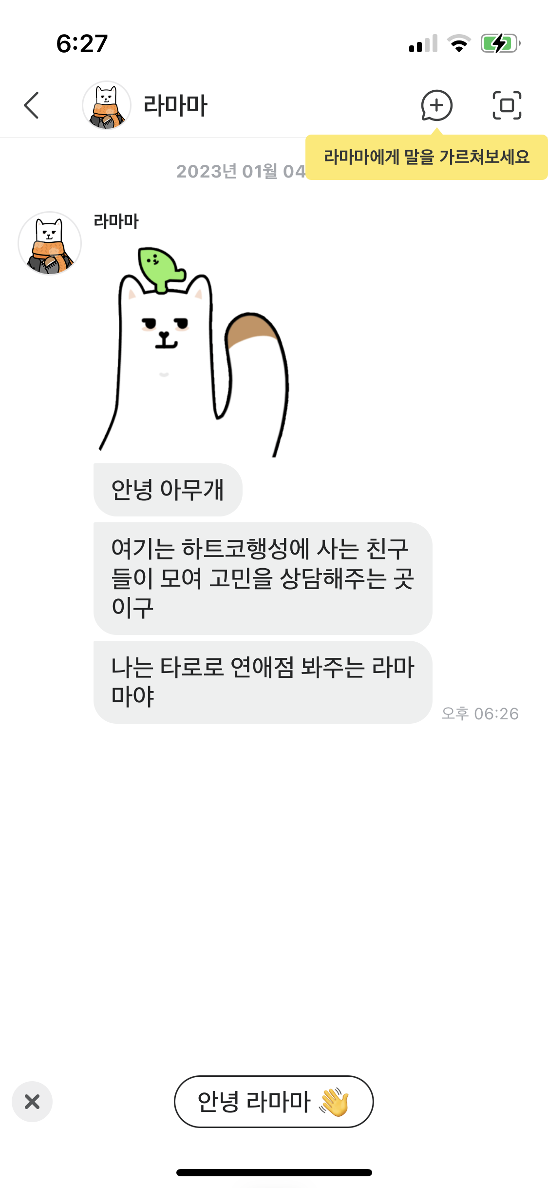 이렇게 캐릭터와 채팅하는 방식으로 운세를 확인할 수 있습니다. 형식은 재미있지만 무료로 확인할 수 있는 것이 띠별 운세밖에 없는 게 아쉽습니다ㅠㅠ