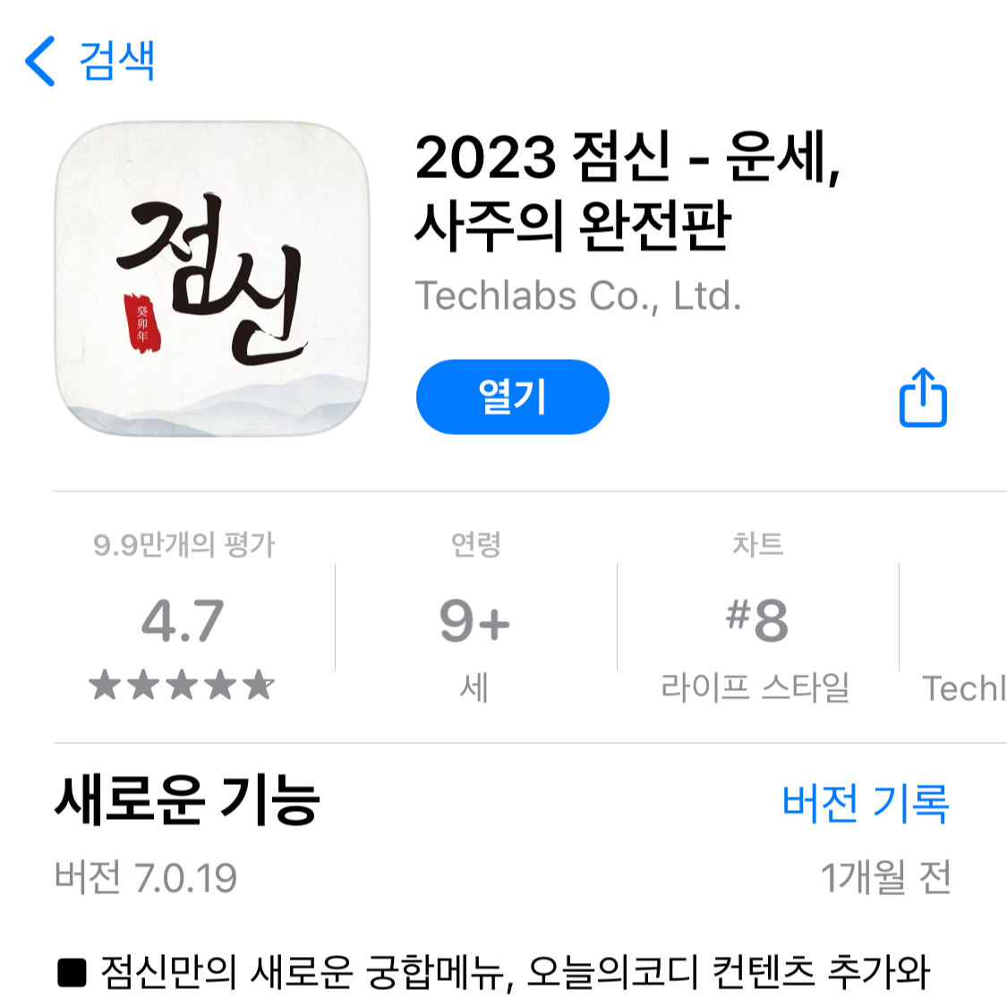 신점이라는 어플입니다. 많은 분들이 이용하고 평점 또한 높은 어플이지요!