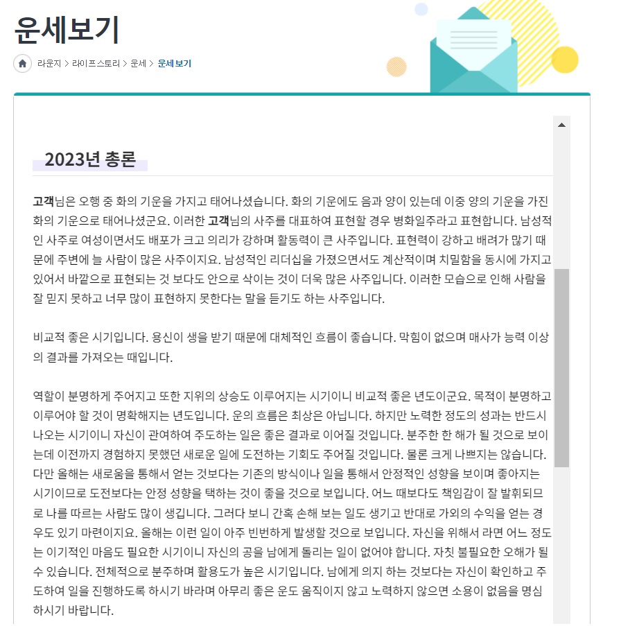 농협 운세는 위의 두 포털보다 더 상세한 운세를 제공합니다.